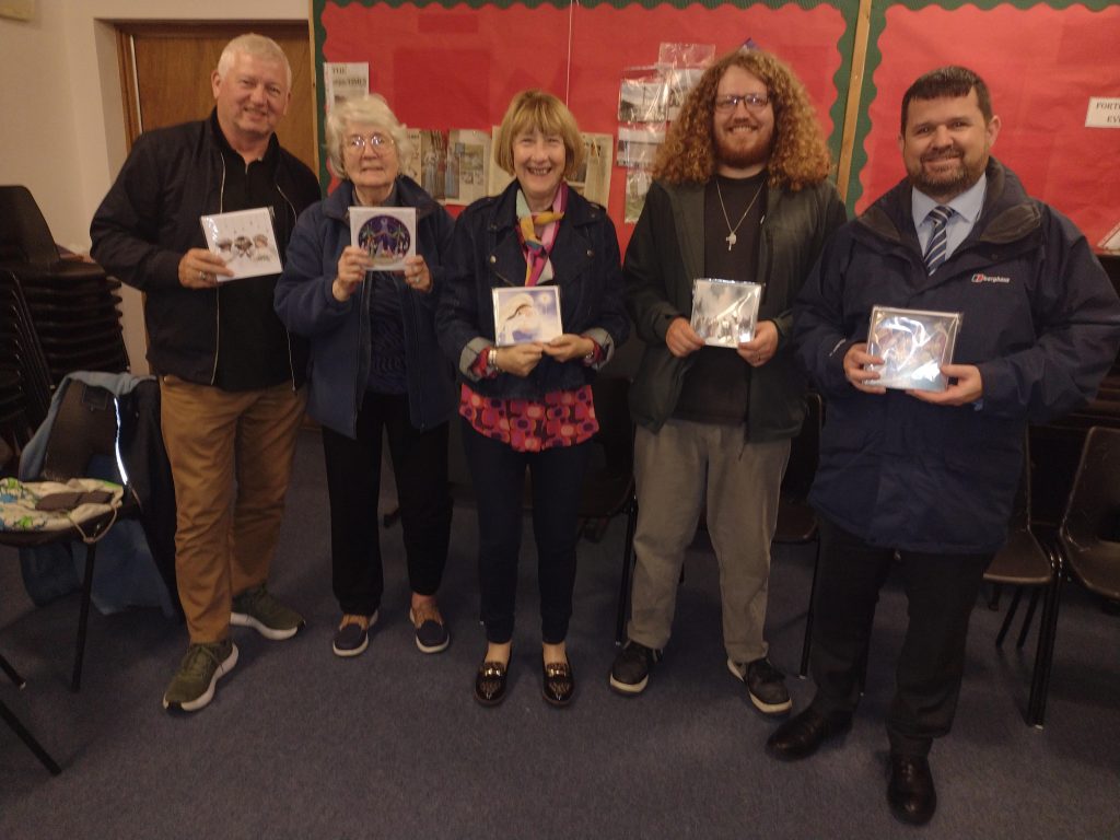 SSVP National President (middle) with members from the SSVP Conference in Elgin displaying the SSVP Christmas Cards that are now on sale.